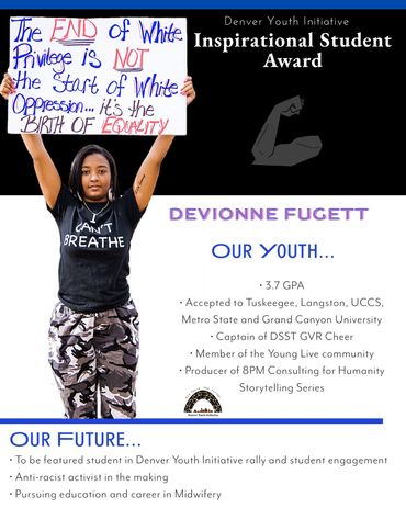 This student has inspired us and deserves encouragement and recognition. The Denver Youth Initiative honors students who serve as wonderful role models of perseverance and determination in the community.